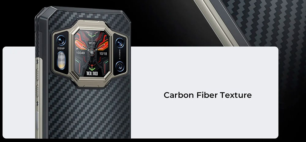 En cuanto a la conectividad, ofrece acceso a todos los sistemas de posicionamiento, soporte Dual SIM (2x nano SIM o Nano + eSIM), Wi-Fi 6 + Bluetooth 5.2, NFC, lector de huellas dactilares, 5G y sistema operativo Android 13. El diseño incluye laterales de metal de alta calidad y una parte trasera con textura de fibra de carbono.