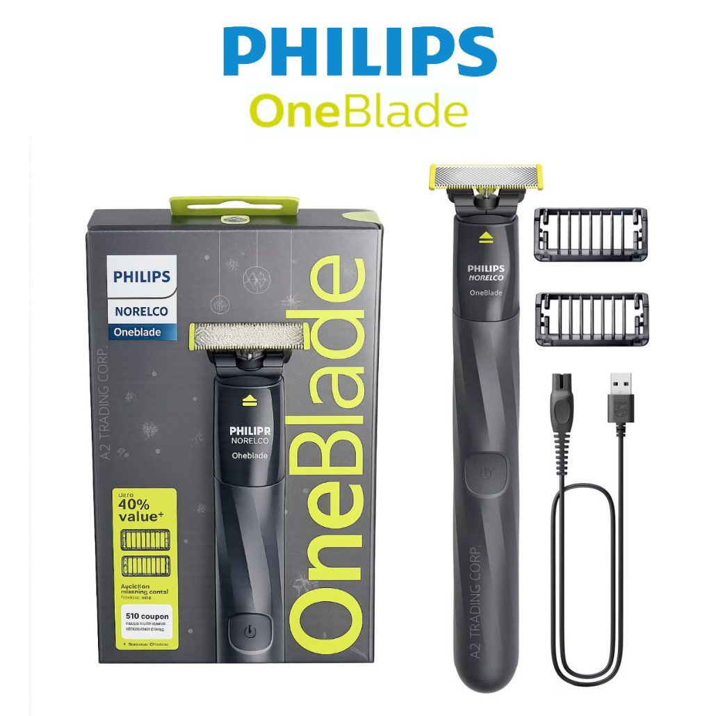 Philips Norelco One Blade – Men’s Wet & Dry Trimmer Shaver with 2 Trimming Combs, Handle, Blade & USB Charging Cable