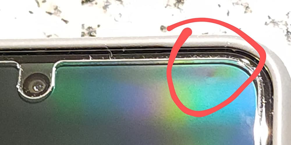 Aunque el problema es difícil de describir, ya que aparece de diferentes maneras y en distintos puntos, lo único común es que sobresale desde debajo de la pantalla. Curiosamente, esto no afecta al Gorilla Glass Victus 2 ni al funcionamiento del teléfono, y todo funciona correctamente sin errores.